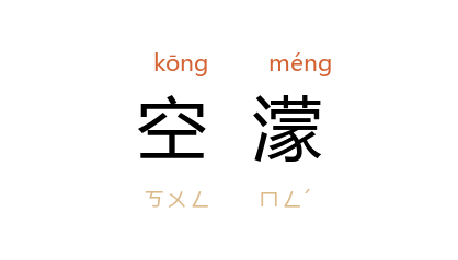 ⒈ 烟雨迷茫的样子。南朝齐·谢朓〈观朝雨〉诗:「空蒙如轻雾,散漫似轻埃。」宋·苏轼〈饮湖上初晴后雨〉诗二首之二:「水光潋滟晴方好,山色空蒙雨亦奇。」也作「涳蒙」。