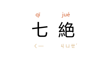 ⒈ “七言绝句”的简称。一种每首四句,每句七个字的格律诗。