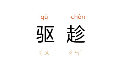 引唐 杜甫 《催宗文树鸡栅》诗:“驱趁制不禁,喧呼山腰宅。”宋 周密 《癸辛杂识续集上·船吼》:“庚寅岁十一月朔, 西兴渡 以舟子不谨,驱趁渡人上沙太早,既而潮至,趋岸不及,溺死者近百人。”