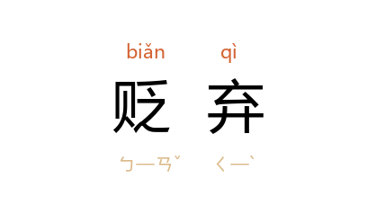 引《后汉书·酷吏传·王吉》:“课使郡内各举姦吏豪人诸常有微过酒肉为臧者,虽数十年犹加贬弃,注其名籍。”唐 柳宗元 《代裴行立谢移镇表》:“唯当遵守詔条,贬弃奸慝,平均徭赋,示以义方。”《万花楼》第六十回:“只求母后将儿处治,如若不忍,亦请贬弃幽宫,别立贤孝之君。”