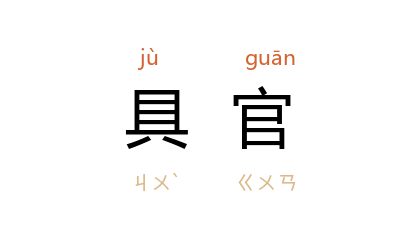 ⒊ 唐宋以后,官吏在奏疏或其他应酬文上,把应写明的官职爵位写作「具官」,以表谦词。