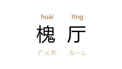 引宋 梅尧臣 《送王著作赴西京寿安》诗:“閒寻前代迹,浄扫古槐厅。”宋 沉括 《梦溪笔谈·故事一》:“学士院第三厅学士閤子,当前有一巨槐,素号槐厅。旧传居此閤者,多至入相。”清 吴伟业 《即事》诗之三:“元僚白髮领槐厅,风度须看似 九龄。”