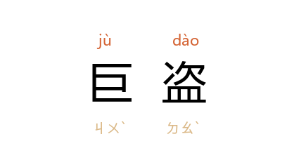 引《庄子·外篇·胠箧》:「然而巨盗至,则负匮揭箧,担囊而趋。」《韩非子·守道》:「大勇愿,巨盗贞,则天下公平,而齐民之情正矣。」