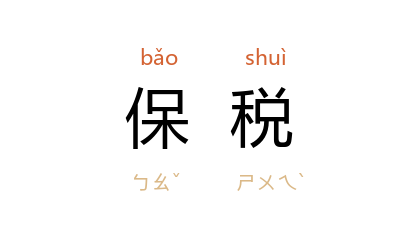 ⒈ 凡由外国进口的原料货物再经制造或加工出口,为免日后外销退税的手续,可于进口时,以暂时记帐方式,先免征关税,称为「保税」。
