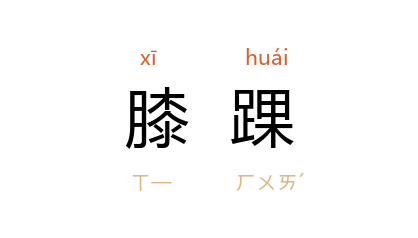 引《后汉书·独行传·向栩》:“﹝ 栩 ﹞常於灶北,坐板牀上,如是积久,板乃有膝踝足指之处。”张天翼 《春风》:“﹝ 丁老师 ﹞又转过身去,装着 卓别林 的姿势往门口一摆一摆地走。两脚使劲拐成‘八’字形,连膝踝都抝得发痛。”