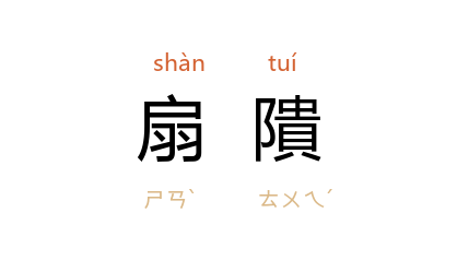 引《急就篇》卷三:“确磑扇隤舂簸扬。”颜师古 注:“扇,扇车也。隤,扇车之道也……隤之言坠也,言既扇之,且令坠下也。”清 袁枚 《随园诗话》卷九:“嗣后学者,遂以‘瓶’为‘军持’,‘桥’为‘略仢’……‘风箱’为‘扇隤’。”
