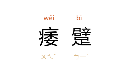 引《素问·痿论》:“故肺热叶焦,则皮毛虚弱急薄,著则生痿躄也。”王冰 注:“躄谓挛躄,足不得伸以行也。”《吕氏春秋·重己》“多阳则痿” 汉 高诱 注:“痿躄,不能行也。”明 李时珍 《本草纲目·主治上·痿》:“治痿躄,强阴。”《医宗金鉴·杂病心法要诀·痿病总括》:“五痿皆因肺热生,阳明无病不能成,肺热叶焦皮毛瘁,发为痿躄不能行。”