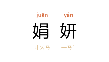 引清 余怀 《板桥杂记·丽品》:“﹝ 董白 ﹞天姿巧慧,容貌娟妍。”况周颐 《蕙风词话》卷二:“描写芳春景物,极娟妍鲜翠之致,微特如画而已。”郭沫若 《前茅·怆恼的葡萄》:“娟妍的蔷薇花下施肥的粪中蛆涌--诗人哟,别再右鼻吮吸芬芳,左手蒙住你左边的鼻孔。”