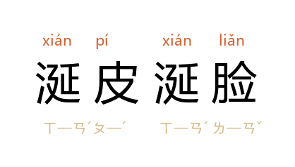 ⒈ 亦作“涎皮赖脸”。亦作“涎脸涎皮”。
