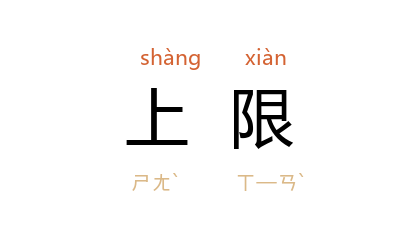 ⒈ 时间最早或数量最大的限度。与“下限”相对。