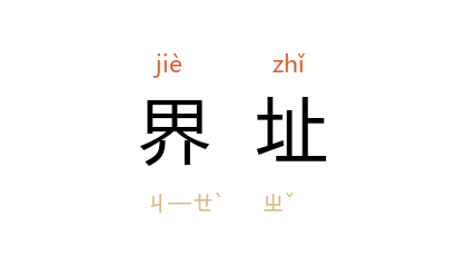 引元 袁桷 《松林行》:“阴阴松林八百里,相传昔日为界址。”沙汀 《记贺龙》七:“为世仇,为正月里赛灯,为水,为界址,经常都是引起械斗的导火线。”