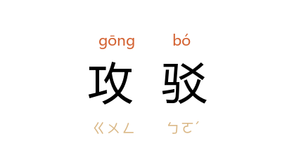 引宋 程大昌 《考古编·正朔六》:“其天行历筭皆可復其疎密,为説甚美,而其畴人自相攻駮,固皆其见失实矣。”郑振铎 《桂公塘》三:“那两位贵酋,也高高兴兴的和 天祥 折难,攻驳。”