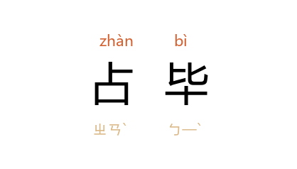 亦作“佔嗶”。谓经师不解经义,但视简上文字诵读以教人。后亦泛称诵读。 《礼记·学记》:“今之教者,呻其佔毕,多其讯,言及于数,进而不顾其安。”