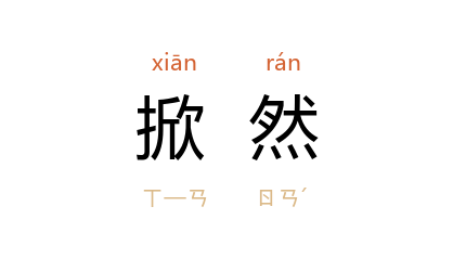 引唐 薛用弱 《集异记·陈导》:“宅内掀然火起,凡所财物悉尽。”南唐 刘崇远 《金华子杂编》卷下:“有一白凤雏,长三尺许,自窠而堕,未及於地,即掀然出户,望西南冲天而去。”元 张宇 《闲述》诗:“解作时文一二篇,胸中意气已掀然。”