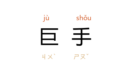 引明 沉德符 《野获编·评论·评书》:“近日书家如 黄贞甫、董玄宰 二公俱巨手不必言,但不知谁当左次。”清 汪森 《摸鱼子·寄锡鬯》词:“儔 班 马,一代推君巨手。”