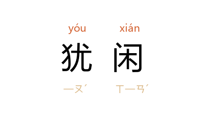 ⒈ 见“犹閒”。亦作“犹闲”。尚可;还过得去;还不要紧。