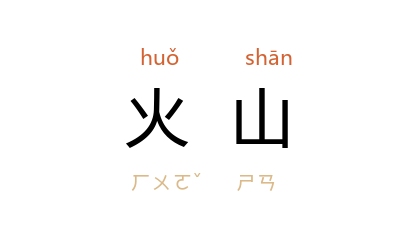 ⒈ 因地热作用,使地下岩浆所喷出的熔岩、岩块及其他物质堆积在地面而形成的锥形山。可分为活火山、休火山、死火山三种。