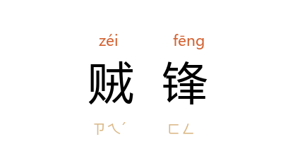 引《晋书·卞壸传》:“贼 峻 造逆,勠力致讨,身当矢旝,再对贼锋,父子并命,可谓破家为国,守死勤事。”唐 周太玄 《弹义成军节度使李听疏》:“或亲当矢石,或躬履艰危,势屈贼锋,竟申朝典。”清 朱鹤龄 《李纲论》:“当时亟上疏请速幸 长安 以避贼锋者, 种师道 也。”