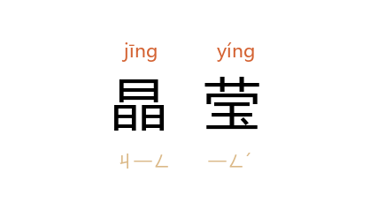 引唐 元稹 《莺莺传》:“是夕,旬有八日也。斜月晶莹,幽辉半牀。”《红楼梦》第九五回:“贾璉 打开一看,可不是那一块晶莹美玉吗?”朱自清 《背影》:“我读到此处,在晶莹的泪光中,又看见那肥胖的、青布棉袍、黑布马褂的背影。”