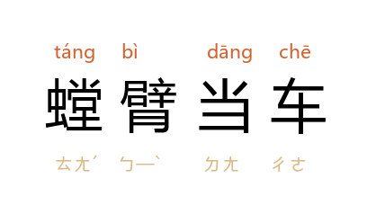 引《庄子·人间世》:“汝不知夫螳蜋乎?怒其臂以当车辙,不知其不胜任也。”