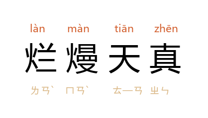 引元 李伯瞻 《殿前欢·省悟》曲:“醉薰薰,无何乡里好潜身。閒愁心上消磨尽,烂熳天真,贤愚有几人?”清 蒲松龄 《聊斋志异·乐仲》:“断荤戒酒,佛之似也;烂熳天真,佛之真也。”亦作“烂漫天真”。 清 陈康祺 《郎潜纪闻》卷九:“李太白 着宫锦袍醉眠 长安 市上,纯是烂漫天真,千古岂容第二人装点此番举动。”