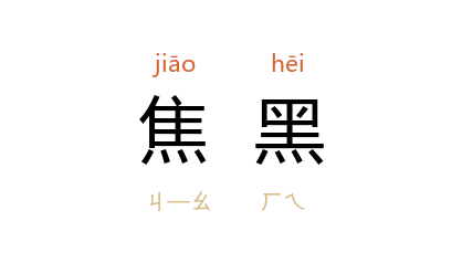 引《初刻拍案惊奇·卷七》:「只见一口牙齿,都焦黑了。」