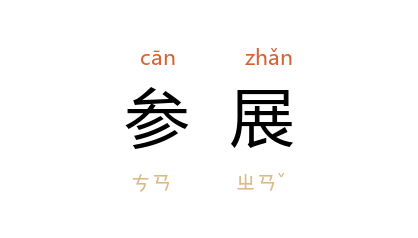 ⒈ 参加展览。
