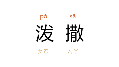 ⒉ 亦作“泼洒”。将液体或其他细小东西向外倒洒,使散开。
