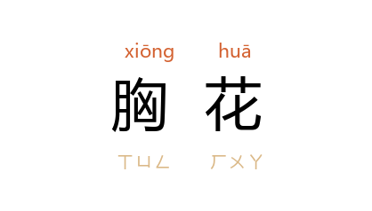 ⒈ 装饰于胸部的花形饰物。有真花和人造花两种。根据服装的造型,装饰在适当部位,以提高服装品位,改变整体服装效果。