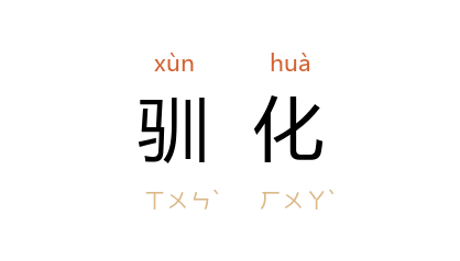 ⒉ 人类把野生动植物培养成家养动物或栽培植物的过程。一般在野生生物引种后提供必要的环境条件,加上不断的选择,促使其生存条件及其遗传性向着人类所需要的方向改变,导致新品种的形成。