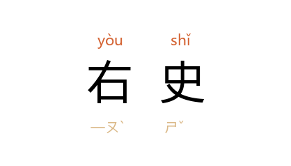 ⒈ 职官名。周代设左右史,负责记录天子的言行,左史记事,右史记言。一说左史记言,右史记事。