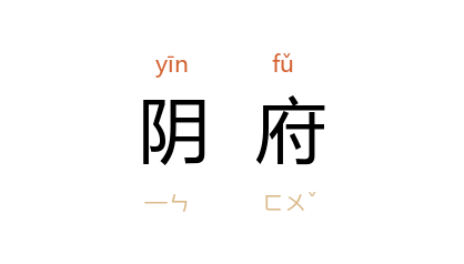 引宋 徐铉 《稽神录·贝禧》:“此乃阴府要职,何易及□,君何辞也?”元 本 高明 《琵琶记·五娘侍奉公病》:“料想奴家,不久归阴府。可惜一家,三个怨鬼在冥途。”清 袁枚 《新齐谐·庄明府》:“宴毕, 庄 知为阴府,因问终身之事可预知否?”高云览 《小城春秋》第四七章:“吴坚,你肯不肯替俺写个介绍信,让俺到阴府见你们的 四敏,看他要不要俺这块料?”