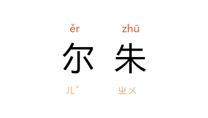 ⒈ 同“尒朱”。复姓。 北魏 有 尒朱荣。