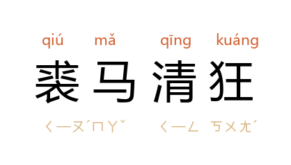 引语出 唐 杜甫 《壮游》诗:“放荡 齐 赵 间,裘马颇清狂。”清 赵翼 《瓯北诗话·杜少陵诗》:“诗人之穷,莫穷於 少陵。当其游 吴 越,游 齐 赵,少年快意,裘马清狂,固尚未困阨。”清 钮琇 《觚賸·圆圆》:“延陵将军 美丰姿……弱冠中翘关高选,裘马清狂,颇以风流自赏。”