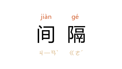 ⒈ 指两个类似的事物之间的空间或时间的距离。