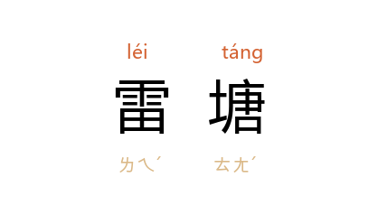 ⒈ 地名:(1) 位于江苏省江都县北。为隋炀帝埋葬的所在。(2) 位于江西省宜春县东北。也称为「雷潭」。(3) 位于广西省柳江县南雷山下。唐朝柳宗元有〈雷塘祷雨文〉。