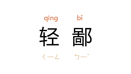 引《红楼梦》第五一回:“寄言世俗休轻鄙,一饭之恩死也知。”郁达夫 《迟桂花》:“知客僧轻鄙似地笑了一笑说:‘还不是城里的轿夫在敲酒钱。’”
