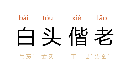 引《怀香记·第二三出》:「孩儿,我与你母亲白头偕老,富贵双全。」