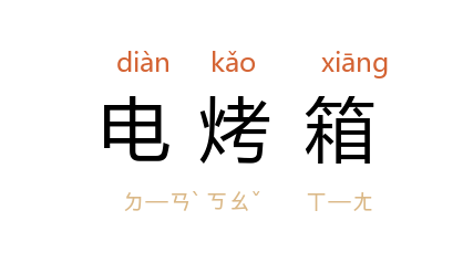 ⒈ 一种运用电热方式来烹烤食物的家电用品。基本结构是一个金属箱,内部装有电热元件,箱外设有恒温器及开关等组件。使用者可选择适当的温度及时间来烘烤食物。