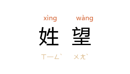 引唐 张鷟 《游仙窟》:“僕因问曰:‘主人姓望何处?夫主何在?’ 十娘 答曰:‘儿是 清河 崔公 之末孙。’”唐 刘知几 《史通·邑里》:“且自世重高门,人轻寒族,竞以姓望所出,邑里相矜。”