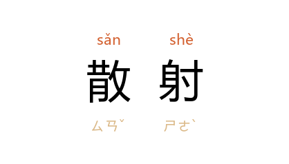 ⒊ 光线(或声束)通过有尘土的空气或胶质溶液等媒质时,部分光线(或声线)偏离原方向而分散传播的现象。例如因空气中含有烟尘,所以室内可以看见从窗户小孔射入的太阳光束,夜间可以看到探照灯的光芒。除光的散射外,粒子(如电子α粒子等)束在直进过程中,与物质发生相互作用而部分粒子偏离原方向前进的现象,亦称散射。
