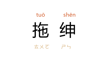 拖, 唐 石经本作“扦”。 朱熹 集注:“病卧不能著衣束带,又不可以褻服见君,故加朝衣於身,又引大带於上也。”