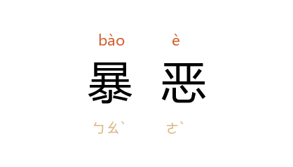 引《汉书·西域传上·莎车国》:“万年 初立,暴恶,国人不説。”唐 柳宗元 《段太尉逸事状》:“﹝ 郭晞 ﹞领行营节度使,寓军 邠州,纵士卒无赖。 邠 人偷嗜暴恶者,卒以货窜名军伍中,则肆志,吏不得问。”