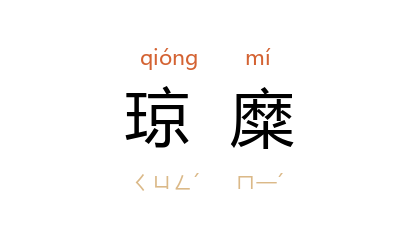 ⒈ 亦作“琼靡”。亦作“琼爢”。