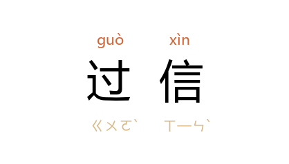 引《二十年目睹之怪现状》第四回:“这是大哥过信我、体贴我,我感激还説不尽,那里还有不好的呢?”钱锺书 《围城》三:“唐小姐 抱歉过信表姐,气愤时说话太决绝,又担忧 鸿渐 失神落魄,别给汽车电车撞死了。”