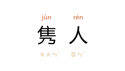 引唐 刘禹锡 《<唐吕和叔文集>序》:“五行秀气得之居多者为雋人。”一本作“俊人”。 《侯鲭录》卷一引 唐 皇甫松 《醉乡日月记》:“醉文人宜谨节令,除章程;醉雋人宜益觥盂,加旗帜。”一本作“俊人”。 宋 周密 《癸辛杂识别集·刘朔斋再娶》:“二人皆 蜀 之雋人,识者无不惜之。”