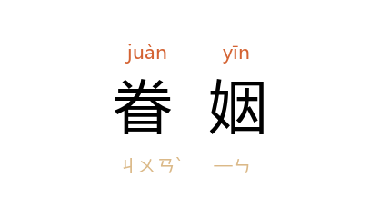 引元·关汉卿《救风尘·第三折》:「肥马轻裘待你一身,倒贴了奁房和你为眷姻。」《儒林外史·第七回》:「大著胆,竟写一个『眷姻晚生』的帖,门上去投。」