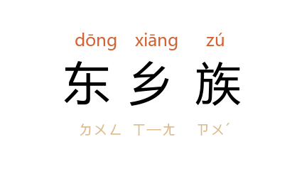 ⒈ 我国少数民族之一。以十三世纪进入今 甘肃省 临夏 东乡 地区的蒙族人为主,与回、汉等族人民长期相处,发展而成。人口约二十八万。主要聚居在 甘肃省 临夏回族自治州 内。1950年起,建立了 东乡族自治县。语言属阿尔泰语系蒙古语族。无本民族文字,通用汉文。大部分人会说汉语。