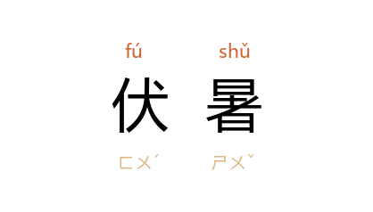 ⒈ 炎热的伏天。伏天指三伏,三伏是初伏、中伏、末伏的合称。夏至后第三个庚日为初伏第一天,第四个庚日为中伏第一天,立秋后第一个庚日为末伏第一天。初伏、末伏各十天,中伏十天或二十天,从初伏到末伏通常为一年当中天气最热的一段时间。