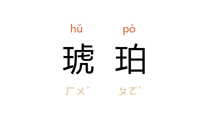⒈ 古代松柏等树脂的化石。为淡黄色、褐色或赤褐色的半透明固体,光泽美丽,质脆,燃烧时有香气。可制琥珀酸和各种漆,也可做饰物。也作「丹珀」、「丹魄」、「虎 魄」。